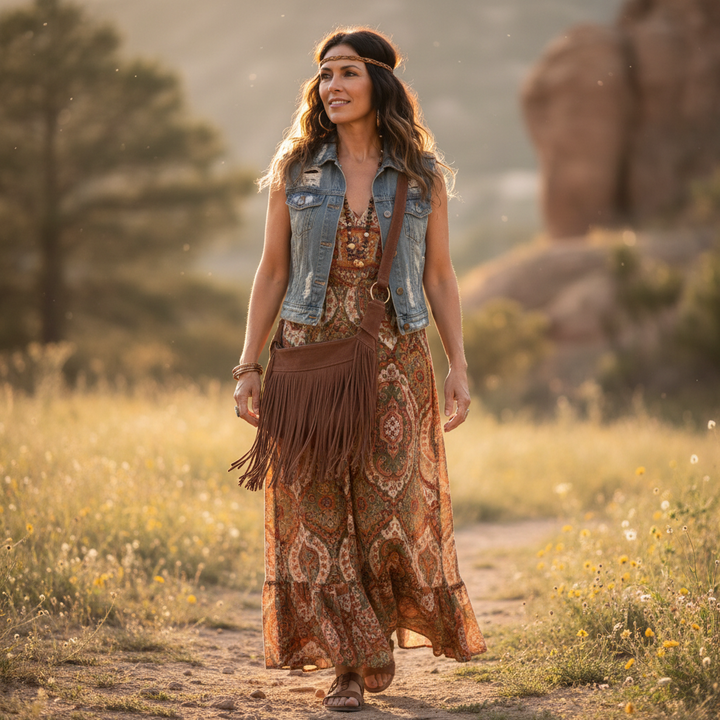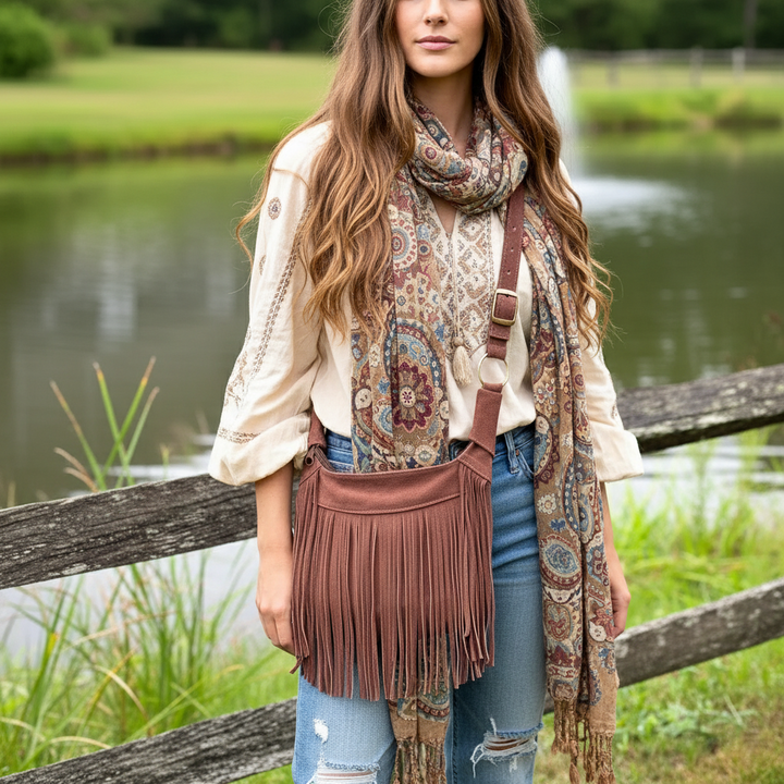 Introducing the Hippie Shop Bohemian Suede fringe bag. Handmade from 100% genuine soft leather suede. It features an adjustable strap and an inner lining, as well as an inner zipper pocket for keeping your bag organized. This chic fringe bag is very versatile and can be used for any occasion!