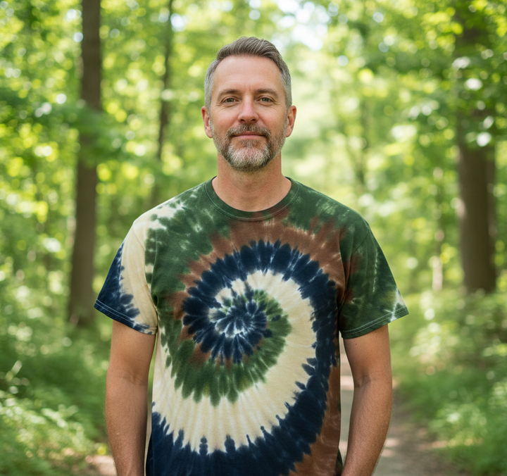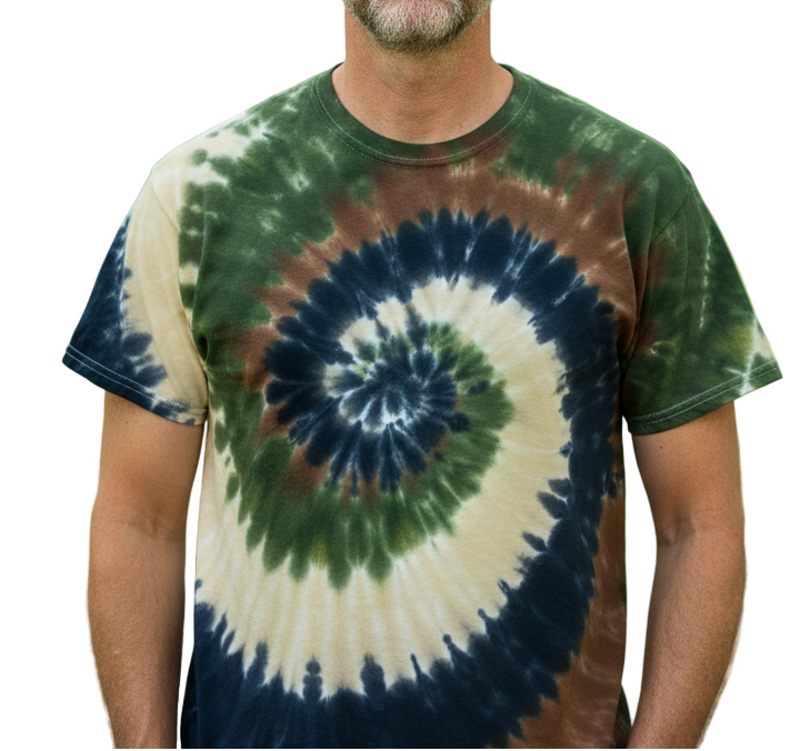 Sir, yes Sir! Our Camo Swirl tie dye will keep you incognito as the groovy hippie you are while you fight to keep peace and jam bands alive. Hand dyed in the USA using fiber reactive dyes on a 100% heavy weight cotton t shirt.