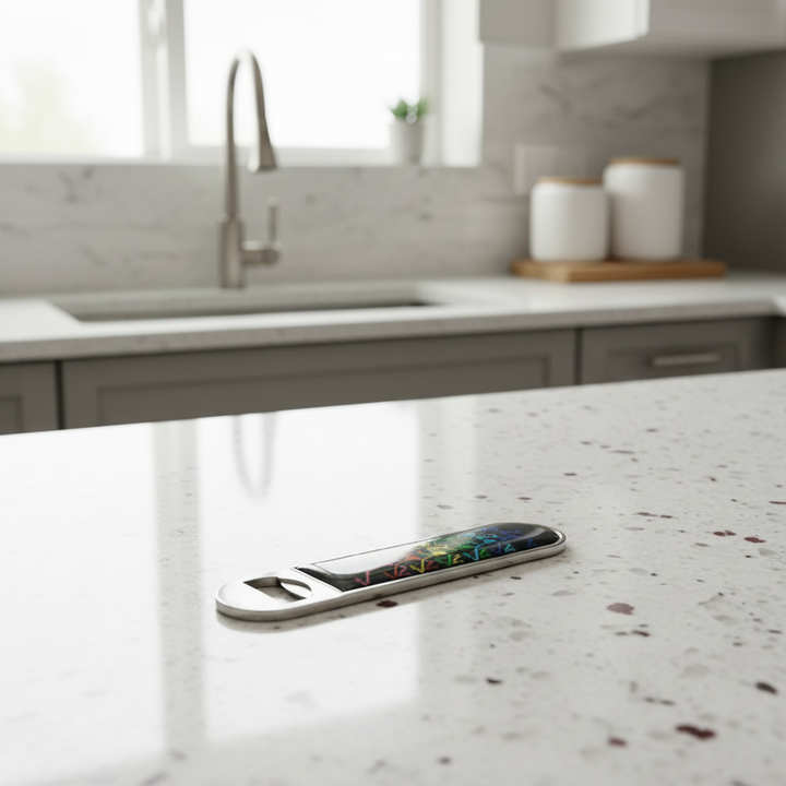 The perfect tool for when you need to crack open a cold one! This Grateful Dead bottle opener features the Dancing Skeletons on a black background and a convenient magnetic back so you can stick it to your fridge or cooler. Also a great gift idea for the Deadhead in your life!