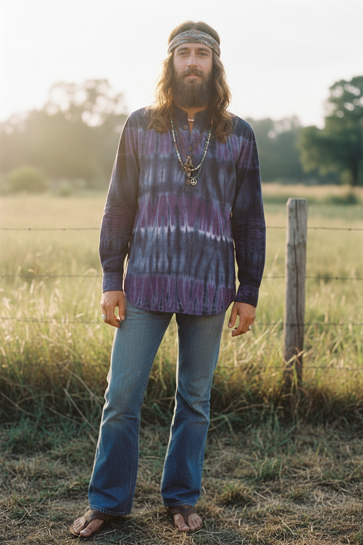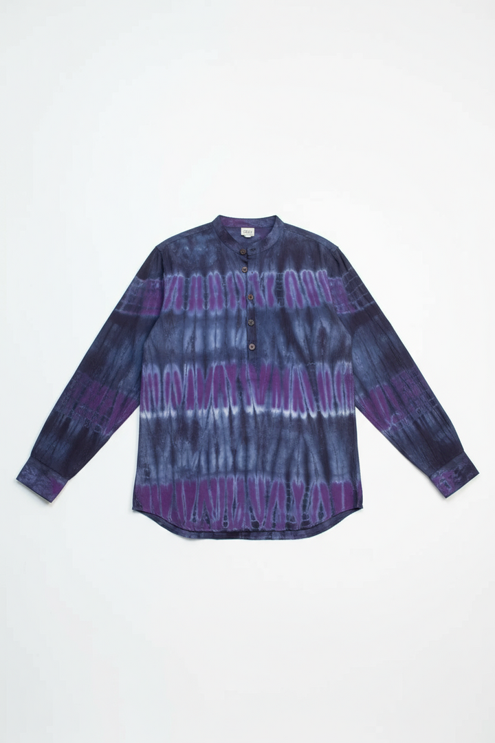 Made from high quality cotton, this shirt offers style without compromising comfort. It has a unique mandarin collar with wood buttons as well as buttoned cuffs. It's the perfect choice for going to a festival or a casual day out. This shirt was crafted with love from local artisans using local dyes.