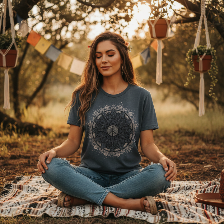 This Hippie Shop Original design features our original artwork silk screened on a comfy heavyweight t shirt.