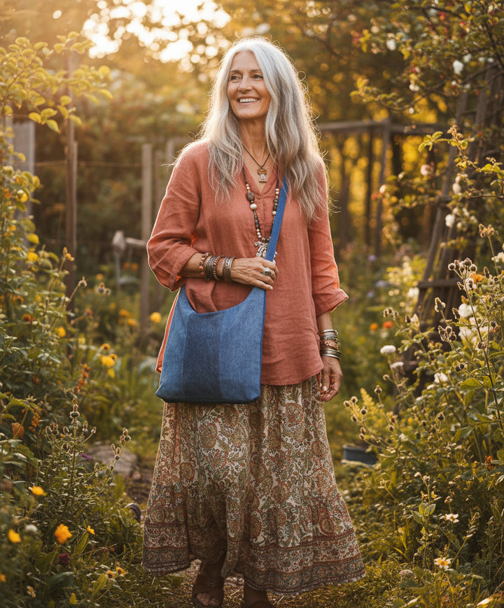 Crafted from recycled denim, this eco-conscious shoulder bag brings sustainable style to your everyday carry. Featuring a unique mix of denim washes, each bag showcases a patchwork design that’s completely one-of-a-kind, with distressed accents that add a touch of vintage charm. Designed with practicality in mind, the spacious interior includes an attached key ring so you’ll never lose track of your keys again. Whether you're running errands, heading to class, or exploring the city, this bag delivers laid-back style with a purpose.
